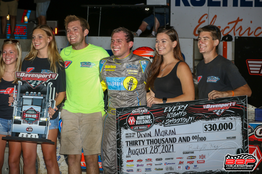Devin Moran wins $30,000 in the 'Quad Cities 150' grand finale at Davenport (IA) Speedway in August 2021 - Brendon Bauman Photo