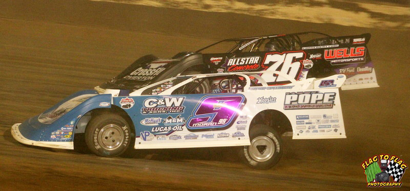 Devin Moran races hard during the 'Dirt Track World Championship' at Portsmouth (OH) Raceway Park - Flag to Flag Photography